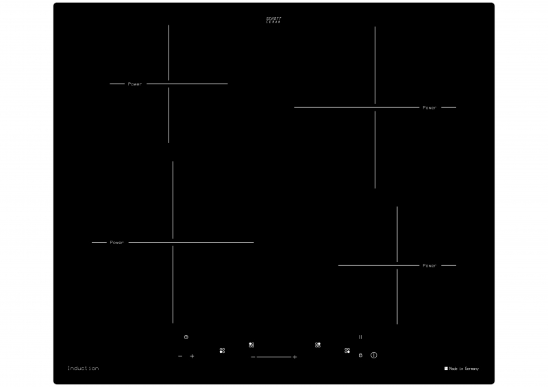 | 4 Induktions-Kochzonen | 1 Induktions-Kochzone Ø 240 mm, 1,5/3,0 kW |
