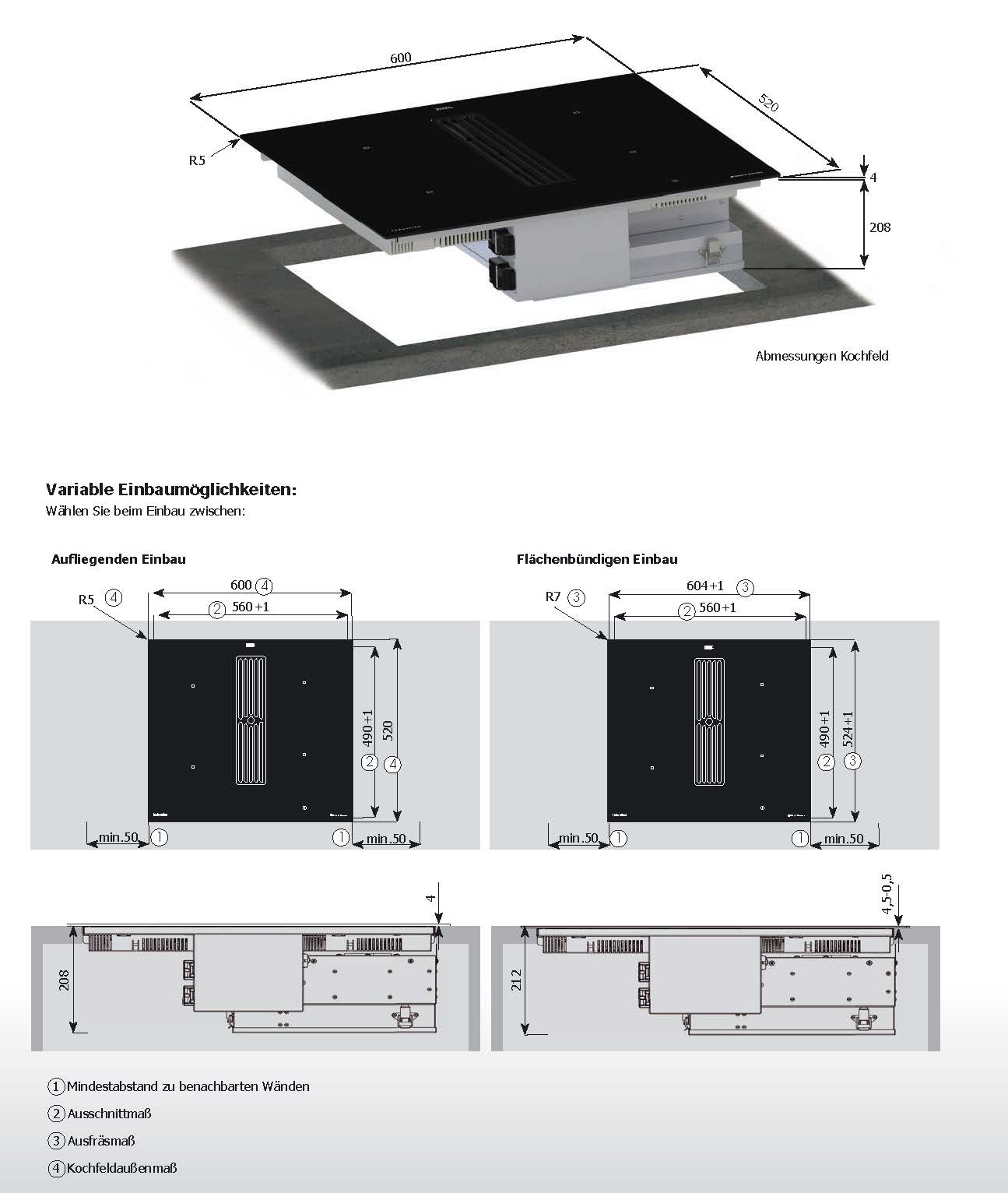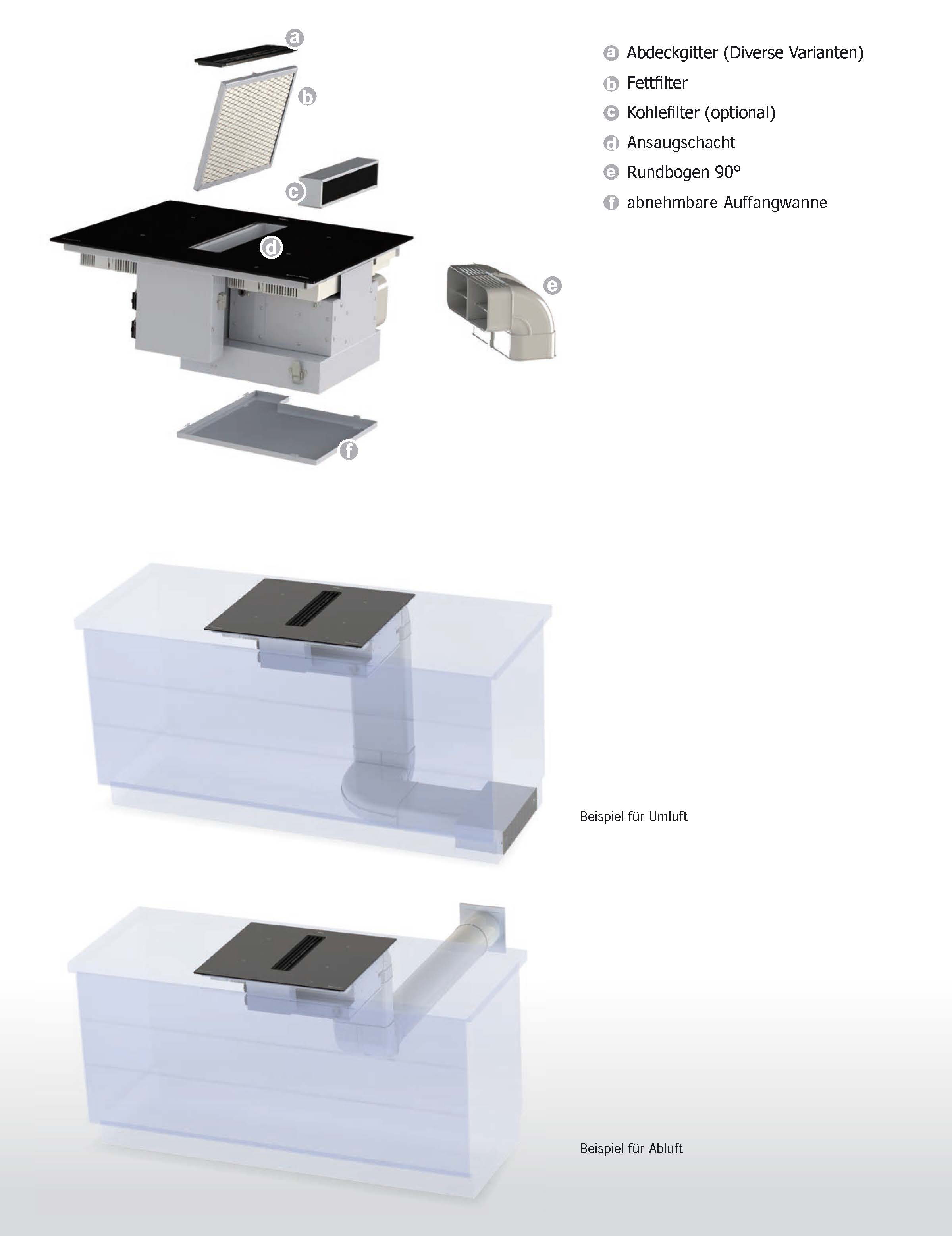 | Ausstattung und Funktionen | Hochwertige Induktion mit integriertem Dunstabzug |