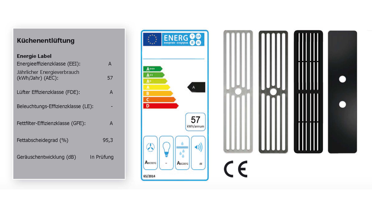 Der eingesetzte Fettfilter erreicht im Zusammenspiel mit der optimierten Zugleistung einen deutlich höheren Fettabscheidegrad als herkömmliche Filter. Das Ableitblech und die Wanne sind aus Edelstahl gefertigt und hierdurch besonders einfach in der Reinigung und Pflege.